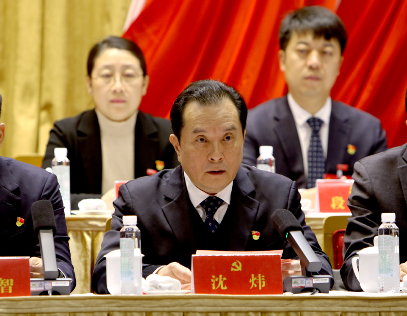 图片说明:校党委书记蒋传海代表学校十一届党委向大会作报告